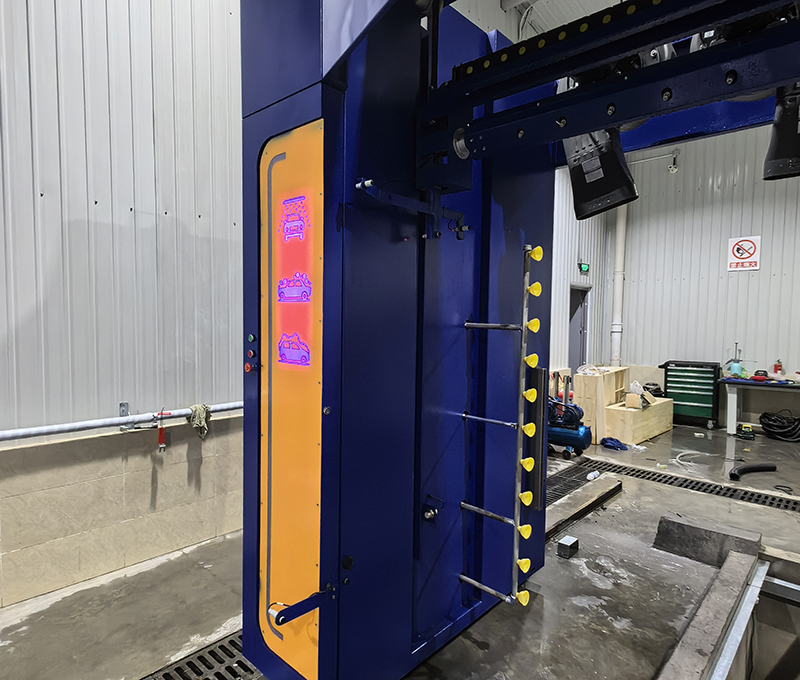 3、360度高壓水刀清洗,進口水泵配合大功率電機,直驅鏈接方式,保證沖洗壓力,勻速,勻壓,勻距清洗車身,德國倍加福超聲波檢測,內嵌式吊梁行走方式配合私服電機,行走穩(wěn)定,行走速度可調節(jié);