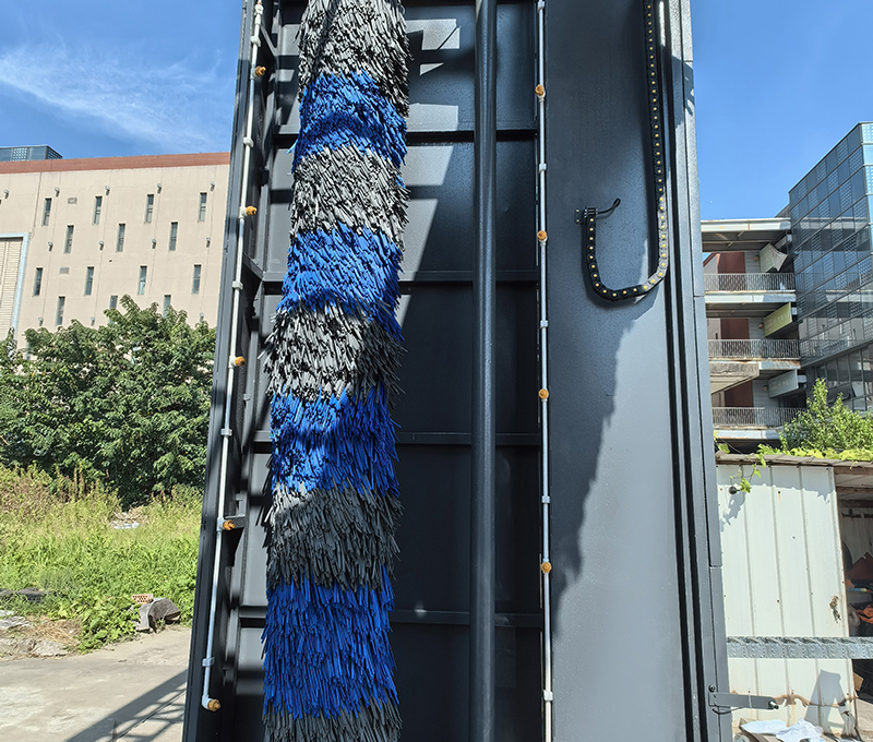 可以根據(jù)需要,選擇單程清洗或往復(fù)清洗功能,并可選擇清洗過程中是否使用頂刷清洗車頭、車尾或車頂。清洗后的水經(jīng)過處理后循環(huán)使用。具有自動與手動控制功能并能選擇是否使用清洗劑清洗,同時具有多項(xiàng)安全保護(hù)功能。(雙刷結(jié)構(gòu),頂部由高壓水沖洗)