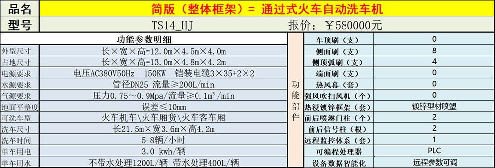 洗車機參數(shù) Equipment parameter